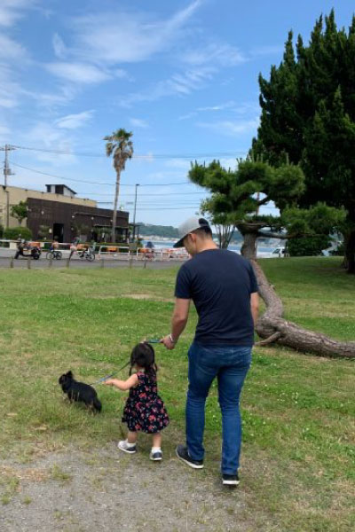 妻、⾧女(6歳)、次女(生後8か月)、チワワ(6歳)と5人家族です!休日はほぼ毎週、妻、子供、愛犬と出かけており、妻と休みが合わない日は子供と出かけに行き、平日休みだからこそですが、ママさん達しかいないとてもアウェイな公園などで遊んでおります(笑)
